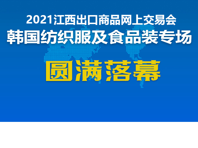 由江西省口岸貿易促進中心主辦,青島啟盛龍國際會展服務有限公司承辦的“江西出口商品網上交易會(韓國站紡織服裝及食品專場)”...